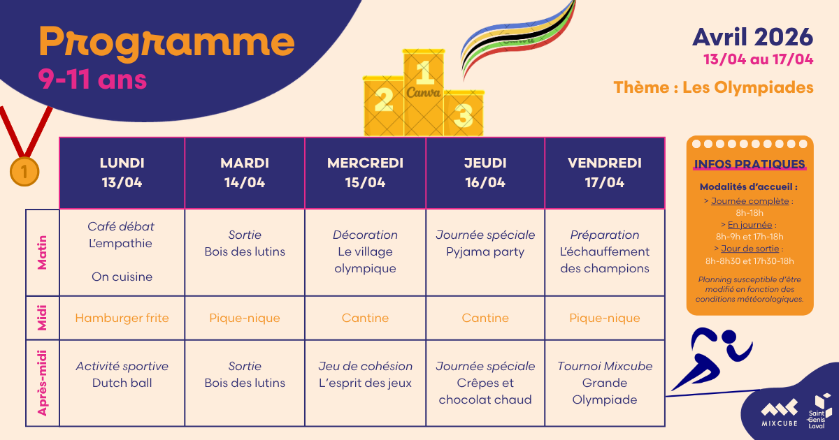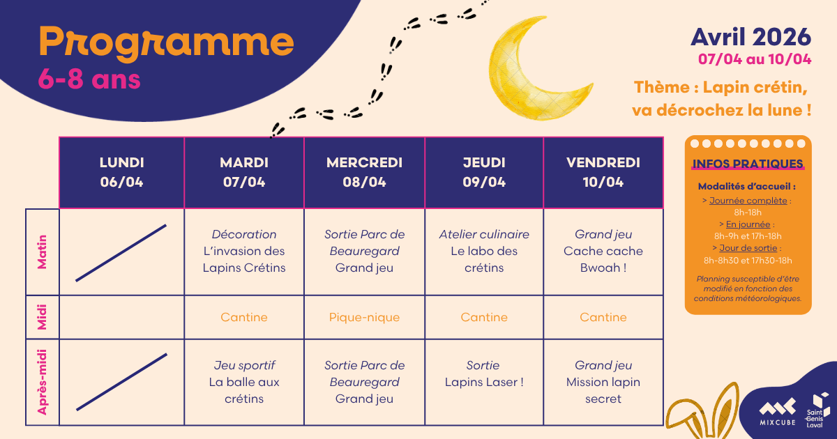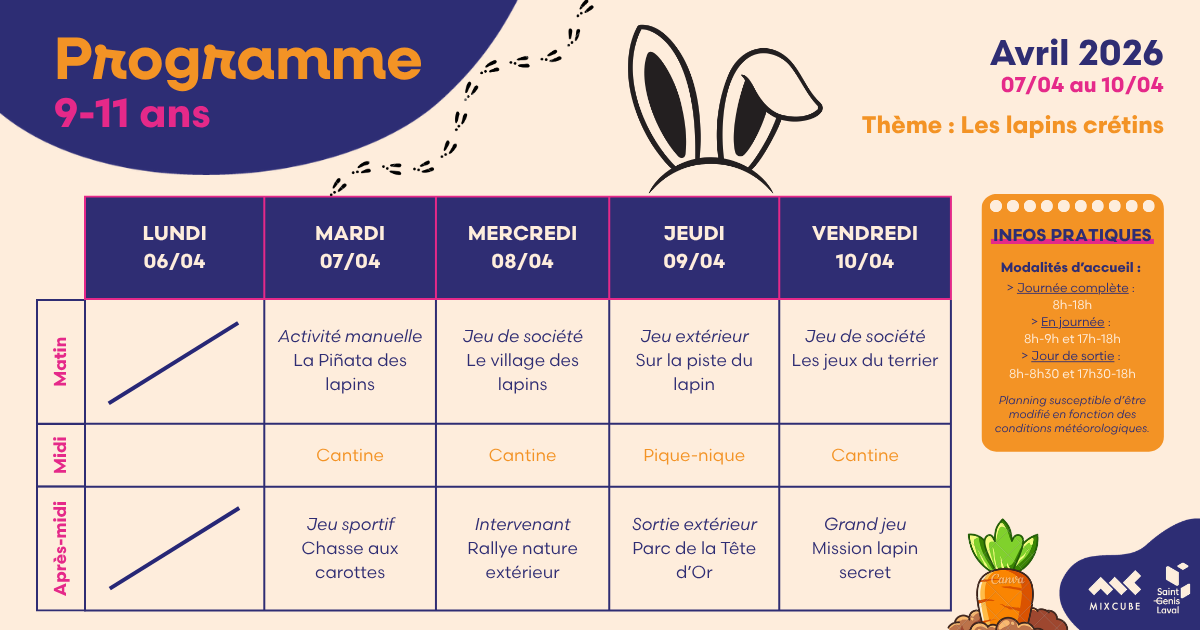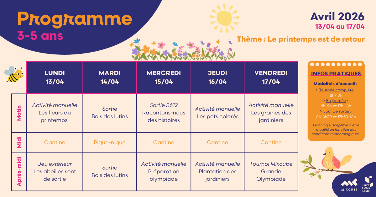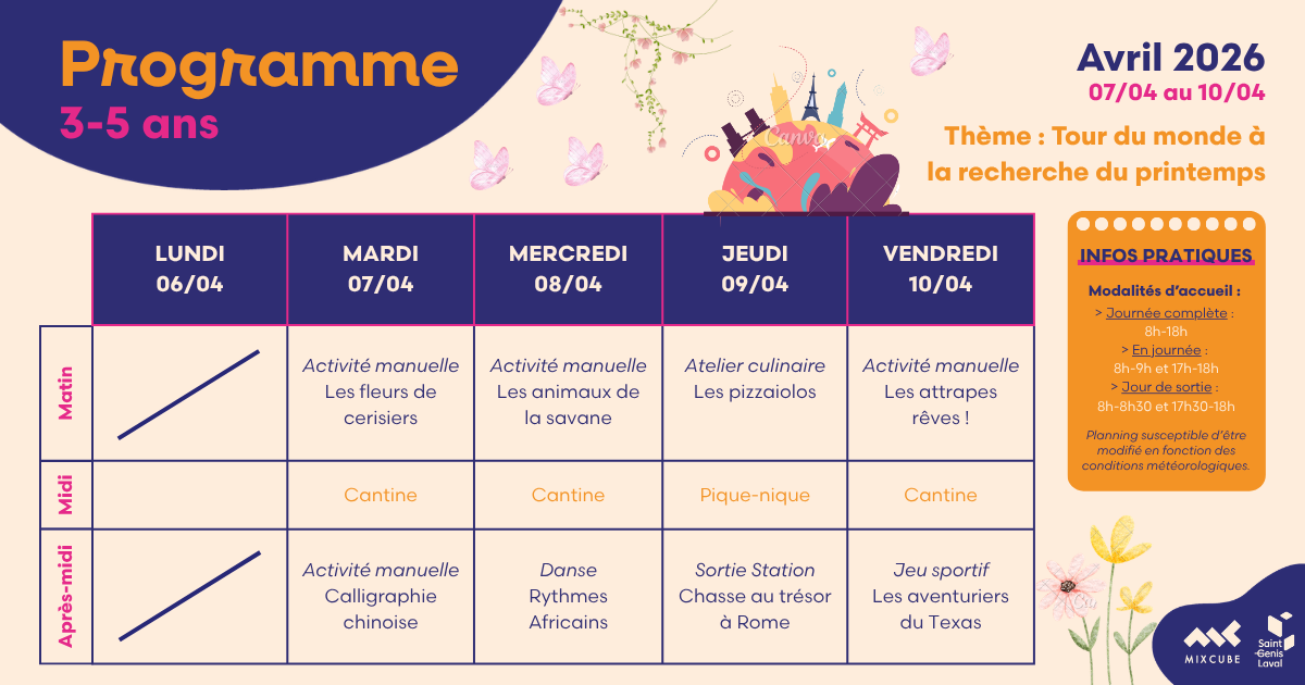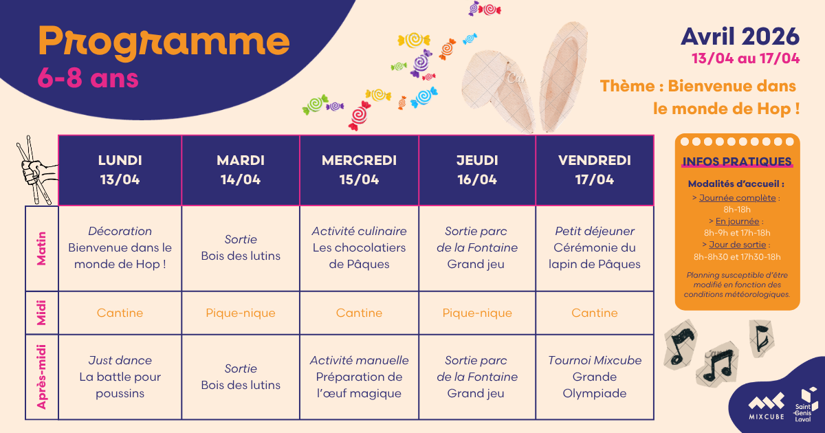 Le Mixcube accueille vos enfants âgés de 3 à 17 ans les mercredis et durant les vacances scolaires.