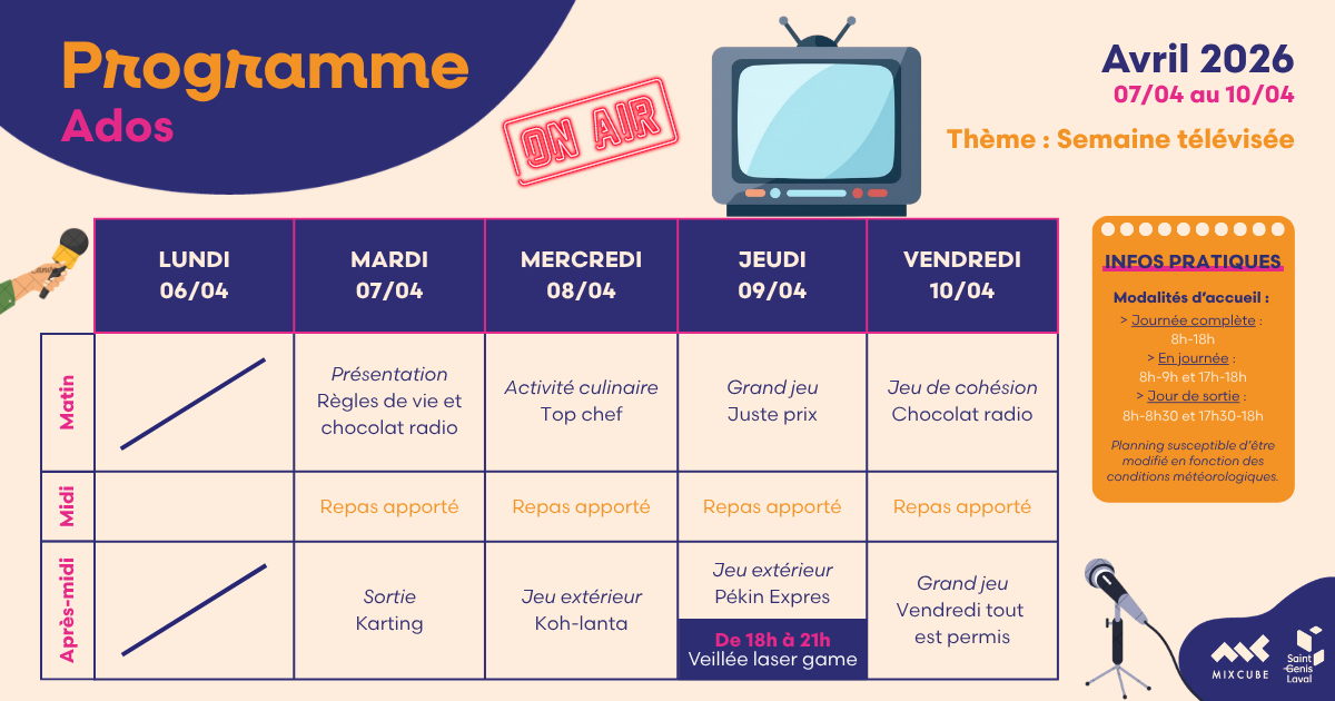 Nouveauté: Permanence  ados pour mettre en place et construire des projets (solidarité, bénévolat, loisirs, etc.) avec l’appui d’un animateur jeunesse.
