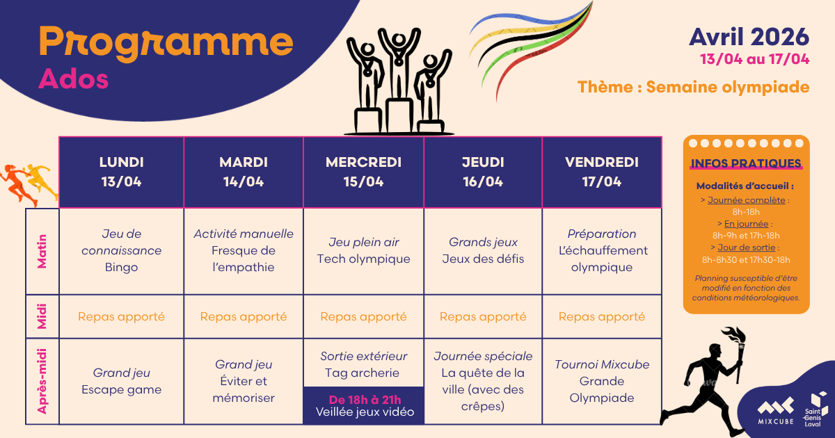 Le centre de loisirs du Mixcube accueille vos enfants âgés de 12 à 17  ans :
